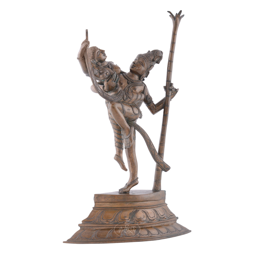 The couple is adorned with beautiful jewelries, artistically designed vastram (clothing), and a tall decorated crown. Kamadeva and Rathi looks happy with a smiling expression on their face, and the sugarcane in Kama’s hand is a removable piece. The bronze statue of Rathi Manmathan is a stunning statue with fine intricate details, and is one of a kind statue made using the lost-wax method; an expert craftsmanship by our South Indian bronze artisan.