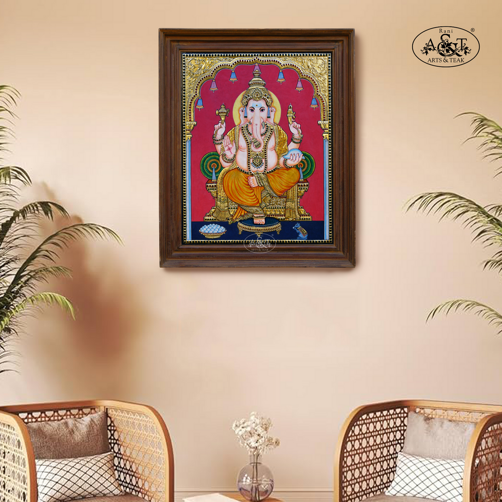 Transform your living space with a breathtaking Tanjore masterpiece featuring Lord Ganesha, the revered deity symbolizing triumph over adversity and new beginnings. This meticulously crafted artwork showcases a graceful portrayal of Ganesha, elevating the ambiance of any room. A luxurious addition to your curated collection or a prestigious gift, this Ganesha Tanjore Painting exudes an air of exclusivity.