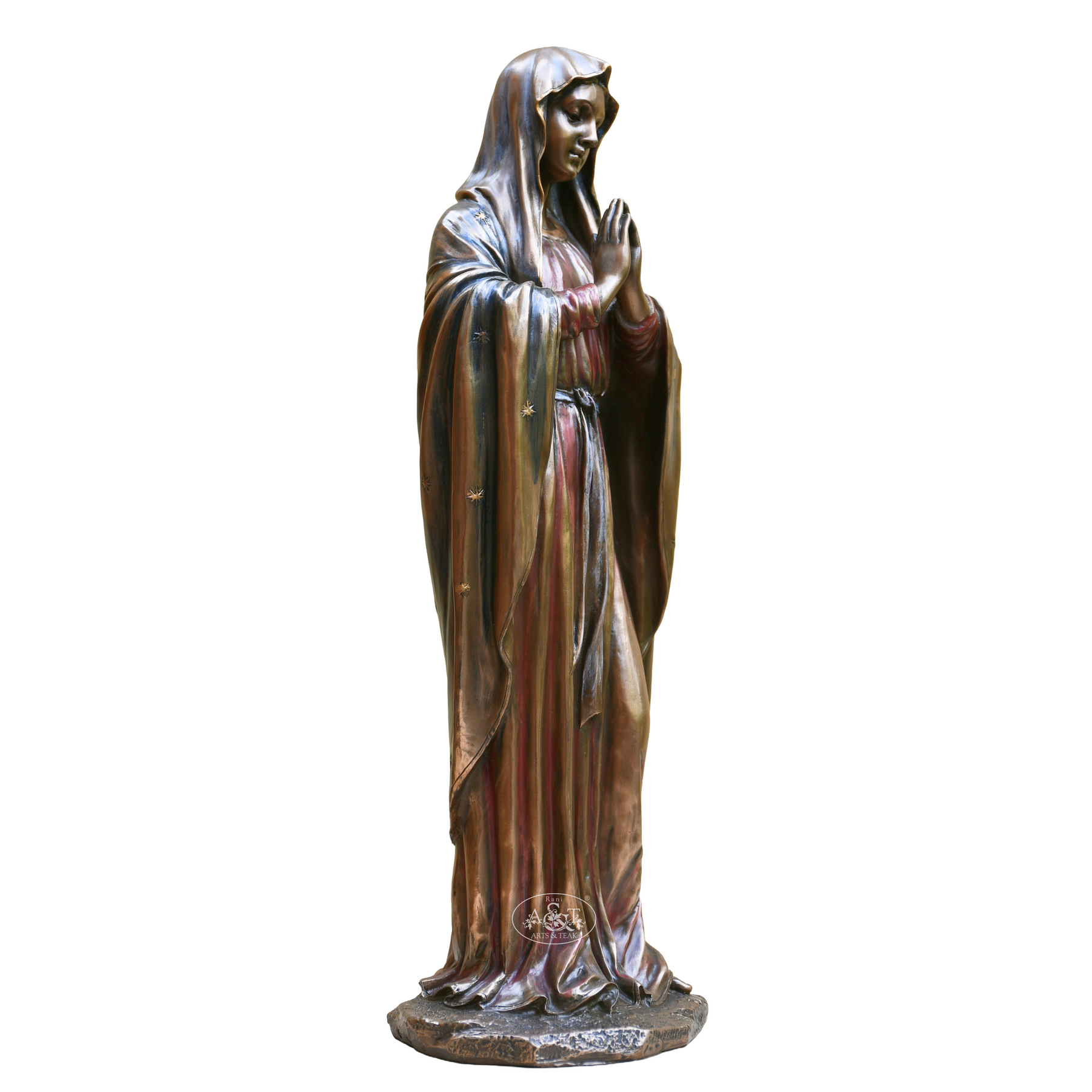 Revered across Christian tradition, Mother Mary represents steadfast devotion, tender compassion, and profound faith. Her serene posture—hands clasped in prayer—embodies the quiet strength of maternal love and spiritual guardianship. Crafted from durable poly resin, this elegant sculptural piece radiates contemplative grace, making it a meaningful addition to your home sanctuary or an inspired gift for the festive season and beyond.