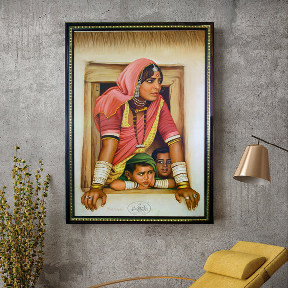 Oil painting on canvas is a timeless art form that has been used for centuries to create beautiful works of art. This particular painting is an example of a traditional gypsy mother and her children that is painted in an oil painting style. The painting depicts a mother lovingly embracing her two young children in a scene of tenderness.This painting would make a lovely addition to any living space and would be sure to bring warmth and joy to the room.