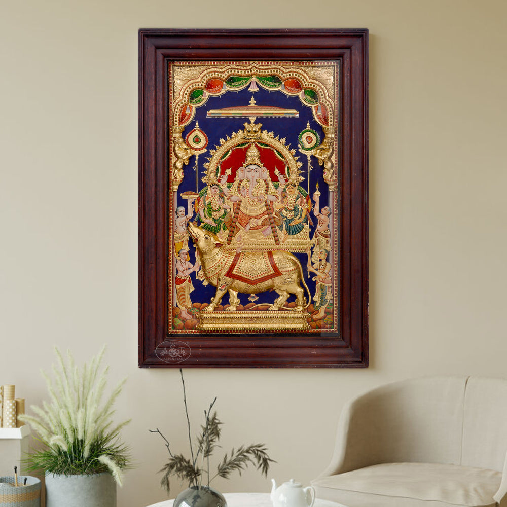 Tanjore Painting - Ganesh, Riddhi & Siddhi