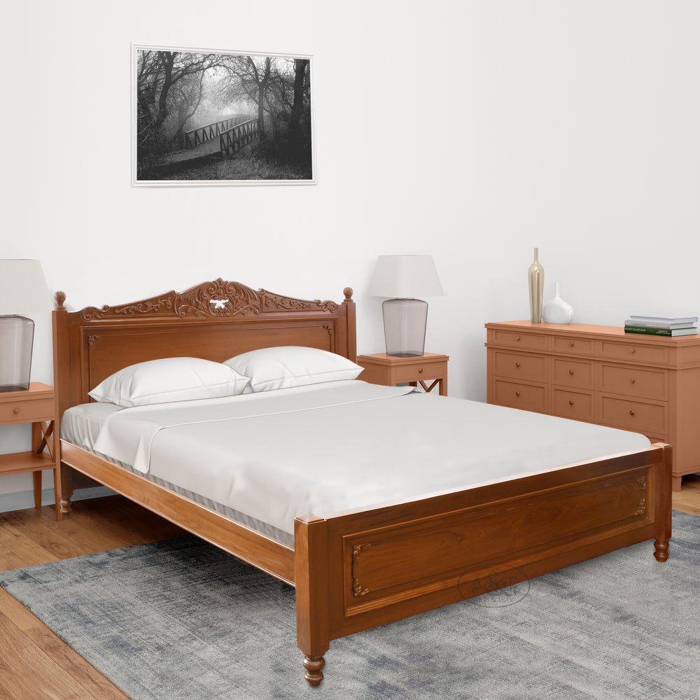 The Teakwood Rajdhani Cot (King Size) is a luxurious and classic style piece of furniture that is perfect for any modern home. This cot is made out of high-quality teakwood and is designed with a traditional Rajasthani style. The cot is king-sized and is perfect for accommodating two people. The bed frame is finely carved with intricate patterns and is finished with a natural teakwood stain to bring out its beauty. The mattress is comfortable and designed to provide good support to the body. This classic cot is a great addition to any bedroom and is sure to be enjoyed for many years.