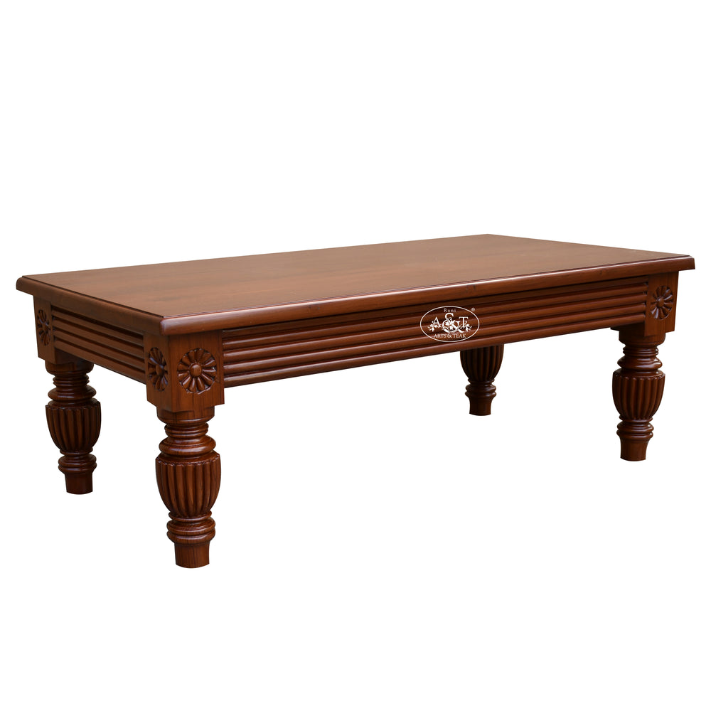 Introducing the luxurious Travancore Center Table, expertly crafted from teak wood with a solid wooden top. Its timeless elegance adds a touch of sophistication to any room, making it a must-have for generations to come. Elevate your space with this prized possession.