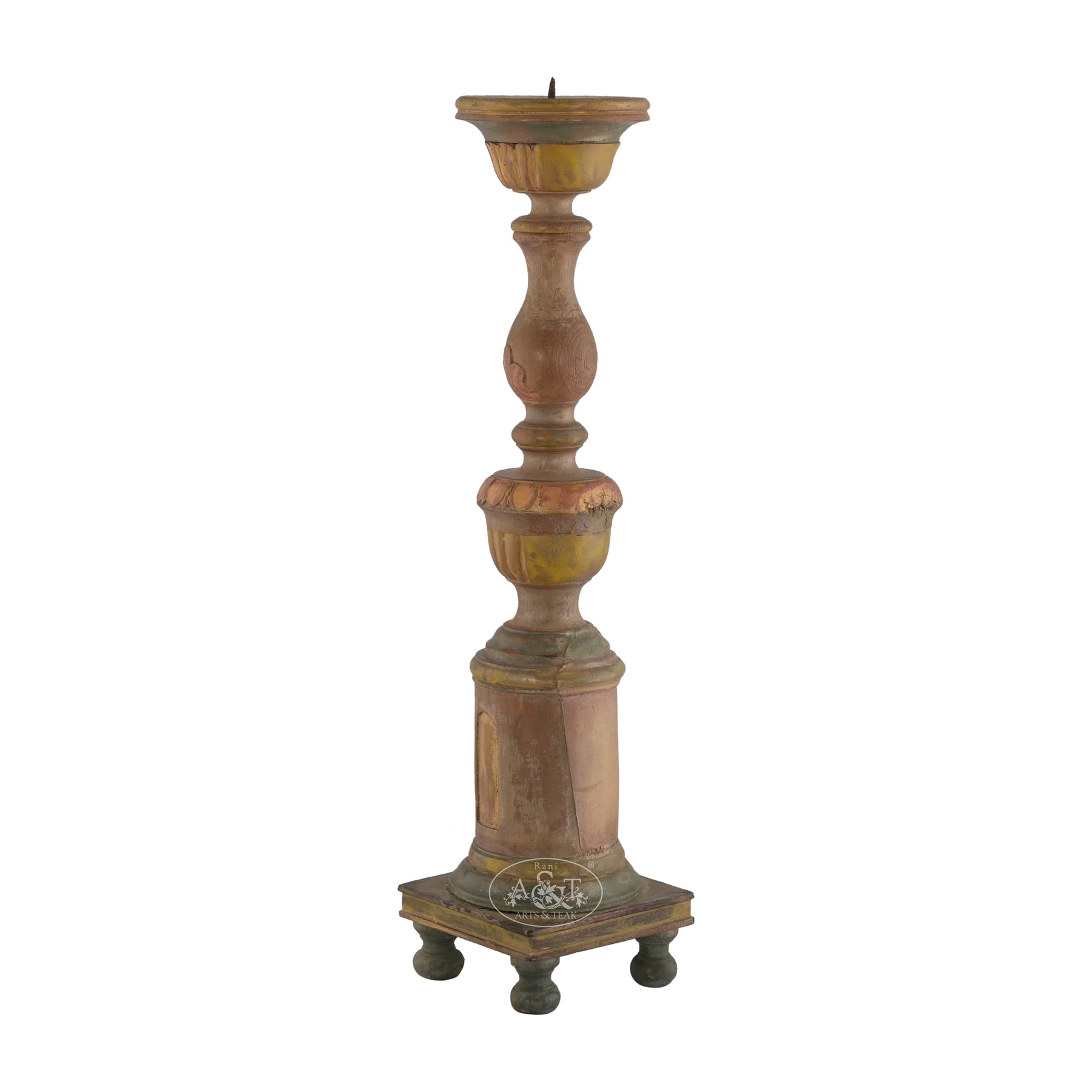 This handcrafted wooden candle stand marries vintage aesthetics with contemporary design sensibility. Its distressed multicolored finish and ornate pedestal structure create an understated yet commanding presence, while the antique-inspired detailing speaks to refined taste. The elevated design accommodates pillar candles gracefully, casting ambient light that enriches any interior. Hand-painted accents and natural wood variations ensure each piece remains distinctly individual—a hallmark of authentic artisanal craftsmanship. Whether positioned as a focal point or complementary accent, this stand infuses spaces with layered character and timeless sophistication.